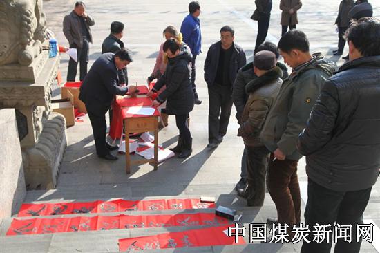 “金猴奋起千钧棒、玉宇澄清万里埃。横批:猴年大吉 !好啊!谢谢武书记!新年快乐!”朗诵着手里鲜红的春联,陕煤铜川矿业公司金华山矿掘进一队职工黄庭州高兴地对忙碌着、义务写春联的矿党委书记武永发表示感谢。这是2月2日(农历腊月二十四)下午,在矿办公大院内发生的一幕,矿山书法家义务写春联,把浓浓的春意和祝福送给矿区职工家属。