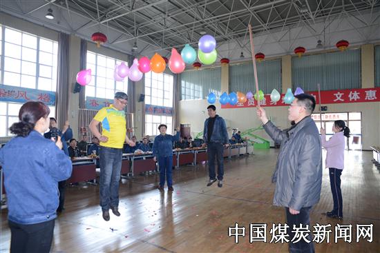 【本网讯】2月2日,神宁集团太西洗煤厂文体活动中心内歌声、欢笑声响成一片,由一分区机修车间举办的迎新年联欢会在这里热闹地举行着。为喜迎新春到来,该厂各党支部分别结合实际组织开展形式多样的文体娱乐活动,浓浓的年味已在全厂弥漫开来。图为趣味游戏金猴闹春现场。