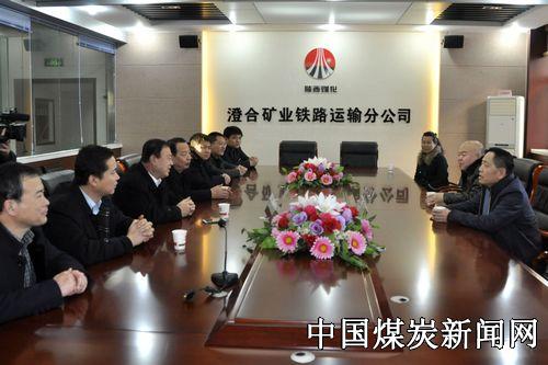 在铁运分公司,吴树林、杨晓民详细询问了近期本部原煤运输情况以及“走出去”赴彬长干部职工工作、生活、铁路运输等情况,并为大家送上了新年的问候和祝福。吴树林代表公司(局)党政对铁运分公司干部职工一年来的辛勤工作表示感谢,希望该公司在新的一年,企业经营越是困难,越要坚定信心,充满自信,充分发挥铁运品牌优势和管理优势,继续把“走出去”战备实施好,稳扎稳打,坚决打好“扭亏脱困、创收增效”攻坚战;要在对外创收,运输经营、安置富余职工等方面充分调动广大干部职工的积极性,都来动脑子,想办法,积极建言献策,只要是有利于安置职工,有利于经营,公司(局)党政都会给予大力支持;同时希望该公司干部职工继续发扬澄合“铁军”作风,在节日期间坚守岗位,高度负责,确保安全运输。并叮嘱该公司党政,要安排好节日期间的安全生产及一线职工的工作、生活,要巡查到位,确保让大家过一个安全、祥和的新春佳节。