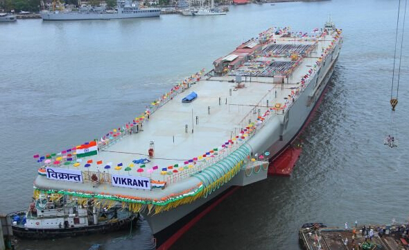 印度“维克兰特”号航母2013年下水时完工30%,尽管中国新造航母建造进度不及“维”舰,但因中国航母为大型航母,因此完工程度应高于当时的“维”舰,达到30%至40%之间。(资料图) 相比此前网上曝光的图片,此次曝光图片的最大可贵之处,是体现了航母舰体分段基本建造完成后的顶部结构,但这种连成一片的平面结构与飞行甲板是存在本质区别的。总所周知,为给舰载机提供更大的起降与停放甲板空间,当代大中型航母的飞行甲板宽度均明显宽于舰体宽度。因此航母都要在航母左舷建造支撑甲板的非对称结,而只有在该结构完工后,航母甲板的整体铺设才可以进行,而按照航母的建造规律,航母的飞行甲板铺设一般也都在舾装阶段。从中国新航母现有的建造进度来看,仅刚刚完成航母舰体模块的堆砌,仍需进行内部的结构焊接调试,还未有任何迹象显示将进行左舷非对称结构的建造。因此,此时宣称中国新航母已进行飞行甲板铺设无疑为时尚早。 既然现在中国新航母尚未铺设飞行甲板,那么中国新航母目前究竟建造到怎样的进度了呢?答案是不到40%。小编得出40%的数据参照俄印航母建造经历获得的。印度“维克兰特”号2013年8月12日首次正式下水时船体除后段分段未安装外已基本完工,前段甲板已完成整形,左舷非对称结构尚未到位,舰岛尚未建造。此时“维克兰特”号的完工程度为30%,但并不能据此就说中国新航母完工程度不足30%,因为重型航母与中型航母毕竟不同。相比之下,夭折的“乌里扬诺夫斯克”号航母被拆毁时,完工程度同为30%,但此时“乌”舰的动力装置尚未安装。而此时中国新航母的动力装置已完成安装,因此,综合对比俄印航母建造来看,中国新航母目前的完工进度应在30%至40%之间。 中国新航母机库已完工 战力仅次美航母