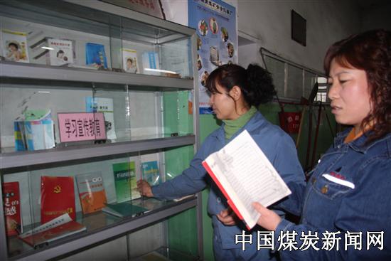 汝箕沟无烟煤分公司狠抓员工思想教育,大力开展岗位标准化作业流程竞赛,确保在安全生产的前提下做好保值增收工作。图为该分公司运转队女工正在认真学习煤矿井下安全作业应知应会。