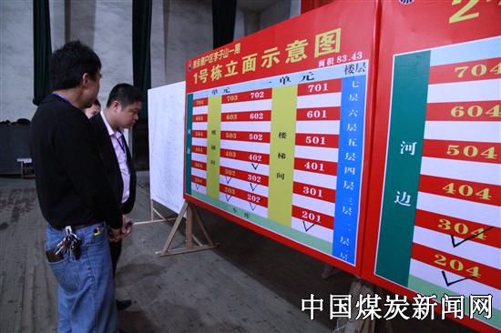 ![]() 分房首先按照原规定“先交钱先选房”的方式选分房序号,然后工作人员按照分房序号呼叫户主姓名,户主再逐一登台,选房选取房号,确认签字,贴上标签,最后签订购房合同。