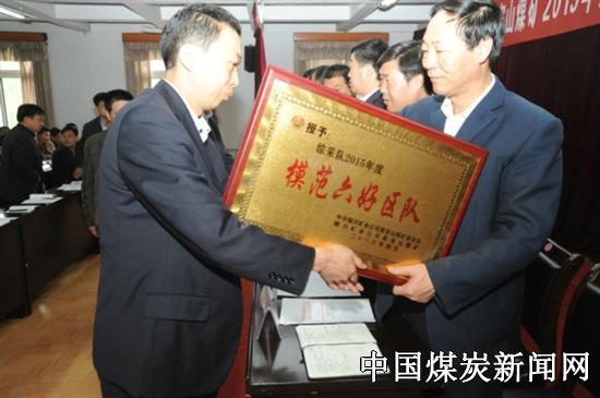 【本网讯】4月15日上午9时,陕煤铜川矿业陈家山煤矿2015年度先进集体和先进个人表彰大会在机关四楼会议室召开。该矿副总以上领导、受表彰的先进个人、先进集体、模范“六好”区队和明星班组等共100余人参加了会议。会议由该矿党委副书记王矿奇主持。
