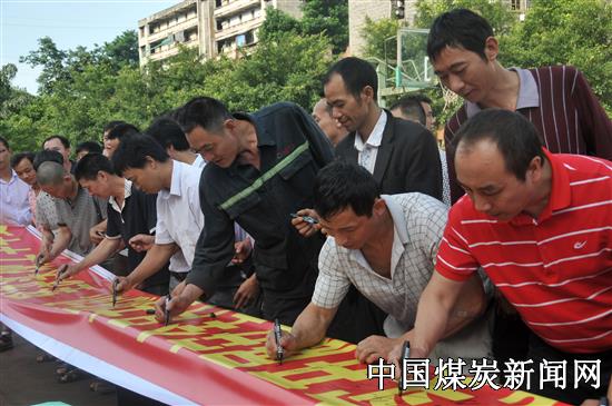 ![]() 重温誓词,从我做起。由安全副经理董江鹏带领全司干部职工举起右手庄严宣誓,大家个个精神抖擞、信心十足,并依次在“扎实开展安全月主题活动,坚决实现上半年安全生产双过半”的横幅上签名,立下了军令状。
