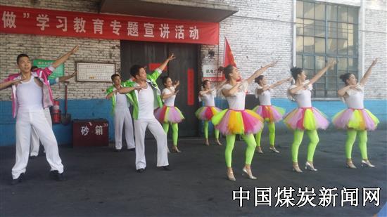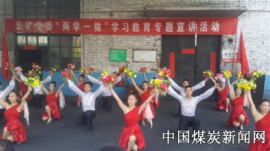 刚才的一幕是由山西阳煤五矿党委、政工部主办、五矿文工团、五矿选煤厂党总支协办的“两学一做”学习教育专题宣讲活动现场。