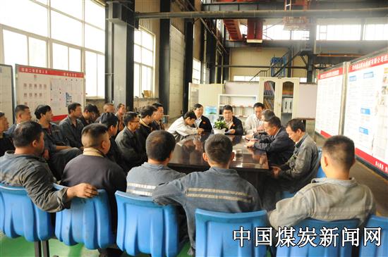 【本网讯】为全面落实2016年安全生产月活动各项工作,提高全体职工安全生产意识,6月22日上午,贵州盘江矿山机械有限公司执行董事、经理谭兵一行,来到矿修车间与近20名班组长召开座谈会,就如何做好安全生产进行了座谈。