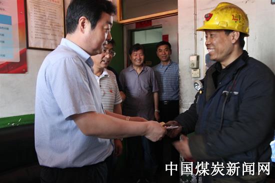 ![]() 随后,在矿领导的陪同下,刘水利来到矿运输区困难党员赵天祥的岗位上,他说:“赵天祥同志,你辛苦了!我代表公司领导看望你,是你们这些党员常年坚守在工作岗位上,兢兢业业、埋头苦干,为实现安全稳定‘双零’目标发挥了重要作用,组织没有忘记你们,这份慰问金,代表公司的心意……”