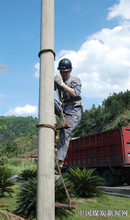 【本网讯】6月3日中午,烈日当空、骄阳似火,福建省永安煤业公司苏桥煤矿几名电工冒着酷暑正在上杆技能操作比武练兵。该矿围绕“强化安全发展观念,提升全民安全素质”活动主题,开展安全生产月“八个一”活动。为切实提高机电员工的技术业务素质和实际操作技能,组织一次“素质提升岗位练兵”技术比武活动,着力提升员工队伍整体素质。