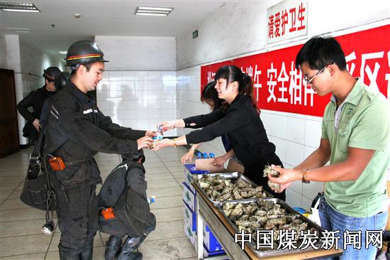 松河公司工会组织人员分别到采一区、采三区开展了“平安端午、安全相伴”为主要内容的送温暖活动,为职工们送去矿泉水、粽子,并不忘叮嘱矿工们注意安全、端午安康。