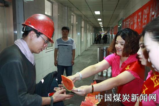 【本网讯】6月30日中午,安徽淮北双龙矿业公司妇女协安会组织开展“送清凉、嘱安全”活动,深入生产井口为上下井的职工送上西瓜、矿泉水、糖糕等慰问品,送上组织的关爱和夏日的清凉。