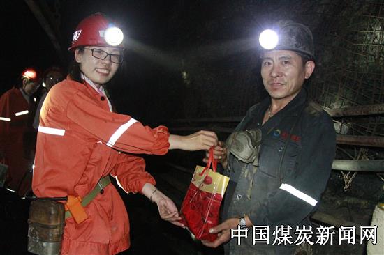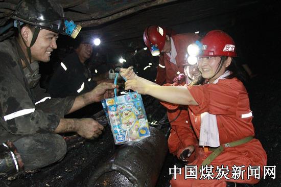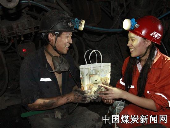 日前,在山东能源临矿王楼煤矿军城井采煤工作面可以看到这样一幅场景,矿工兄弟们正挥汗如雨,紧张地工作着,看到汗流浃背的职工家属们主动上前用毛巾拂去他们一脸的煤尘和汗水,把一份份精心准备的礼品递到矿工的手上,一句句安全话语,温暖在矿工的心窝上。