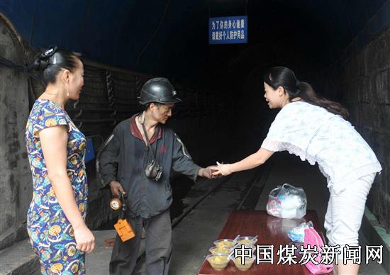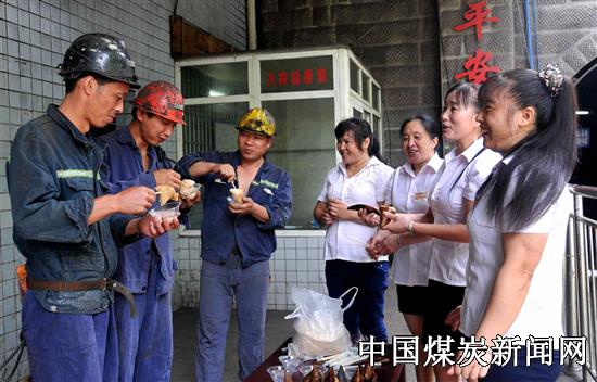 ![]() 夏季酷暑难耐,她们送上银耳汤、绿豆汤、西瓜等食品为进出井的工友解暑;冬季严寒逼人,她们送上热气腾腾的甜酒汤圆、鸡蛋到井口为矿工驱寒;每逢传统佳节,她们都会为上下班的一线职工送去粽子、月饼、苹果等慰问品,送去公司的关爱与问候,叮嘱矿工们要注意安全,温暖矿工们的心。