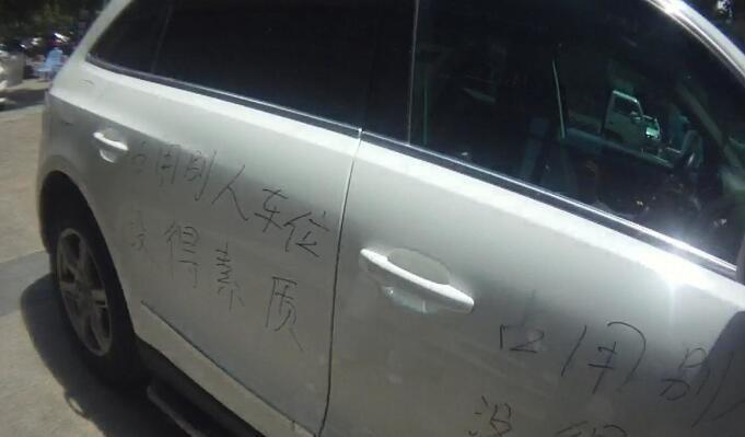 | 占别人车位没留电话 女子轿车被喷上“没得素质” | |||