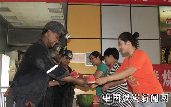 【本网讯】炎炎夏日,山东能源临矿集团王楼煤矿在副井口大厅开展了女工送清凉活动。活动现场,一块块甘甜可口的西瓜,让职工们甜在嘴上,乐在心里,为广大职工带来了丝丝凉意。
