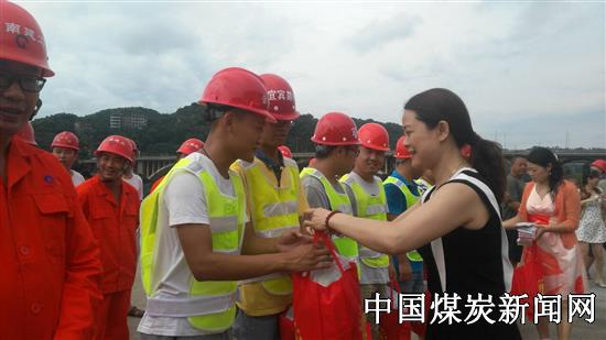 【本网讯】7月27日,宜宾市翠屏区总工会常务副主席罗静、余凯、川煤鼎能建设公司川南建工工会陈策刚书记一起,两工会组织到宜宾市长江生态综合治理项目部,为工地一线承担具体施工任务的员工、农民工们60人送去夏日的清凉,开展了“夏季送清凉慰问活动”。