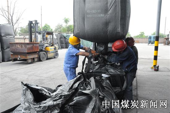 【本网讯】近日,面对1000余吨脱硫脱硝碳的销售量,神宁集团太西洗煤厂紧紧抓住有利时机,积极组织、科学合理安排相关部门,做好发运工作,打响了一场艰苦的销售攻坚战。图为员工正在进行产品装袋。