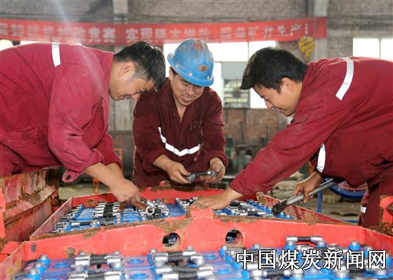 【本网讯】中煤大屯公司徐庄煤矿围绕企业发展中心工作,积极开展经济技术创新活动,增强职工自主创新能力,努力降本增效。图为掘进六队职工改造井下电瓶车,自己动手更换电瓶,为矿节约了大量资金。