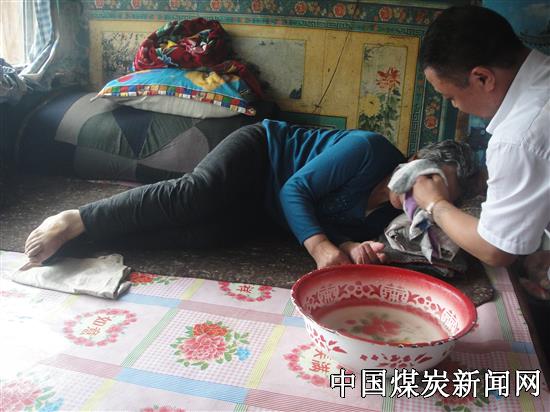 高峰,用孝心给了母亲重生的希望,也用孝心感动了每一个同忻人,更用实际行动让当代人缺失的孝德得到了升华。高峰,也是一个懂得感恩的人,他说:“同忻矿在我最困难的时候帮助了我,现在我也要用我的实际行动回报同忻矿!”他是这么说的,更是这么做的。由于他工作突出,先后被评为矿劳动模范、精神文明十佳等。图为高峰正在为母亲洗脸