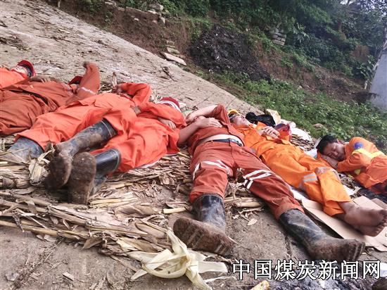 时间紧,任务重!时间就是生命!事故现场潮湿闷热,为抢救受灾人员生命,救护队员顶着炎炎烈日,充分发扬不怕苦,不怕累精神!连续开展高强度救援,连续奋战至深夜!