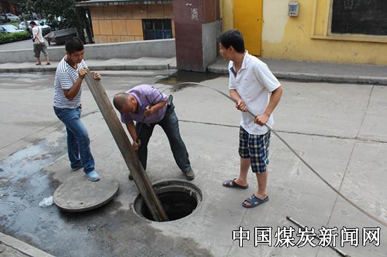 【本网讯】8月9日,陕煤韩城实业下峪口分公司供暖服务队小修班6名水暖工对堵塞排水管道进行疏通作业,给力“七下八上”主汛期防洪和综合处、下广场团结村共8幢楼住户的正常排水。