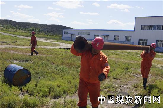 气氛火热的生产一线,重量100多公斤的钢管,2名救护中队指战员抬着健步如飞;25度坡度的主井筒,指战员们工作自如;仅用一天半干完3天的工作量。救护队太能干了!一群悍将!旁边的职工们不由自主的感叹到。8月11日,在新疆兵团第十师的新疆屯南煤业有限公司的一个煤矿上,上演着激励人心的一幕幕劳动的场景。