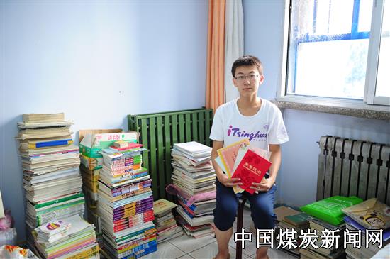 一张九十年代的写字台和一张同年代的单人床,占据了卧室的二分之一空间,剩下的二分之一又被整齐堆放了满地的书占去二分之一,这样的一间卧室,成长了一名同煤理科状元,他的名字叫尚鹏程,是同煤集团实业公司女工李培叶的孩子,目前已被清华大学录取。