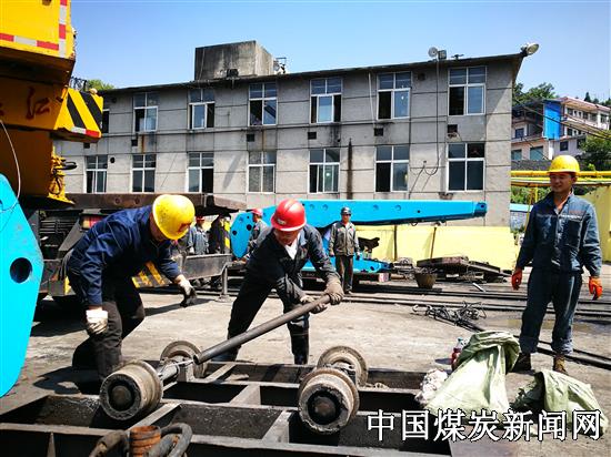 【本网讯】8月17日,贵州盘江股份公司山脚树矿生产服务公司职工在采二区工业广场检修装运综采支架的平板车。该矿221210综采面自本月中旬展开安装以来,采二区、生产服务公司、汽车运输服务公司等单位通力合作,力争按照计划完成采面支架、机组等设备的安装任务,确保采面按计划回采。