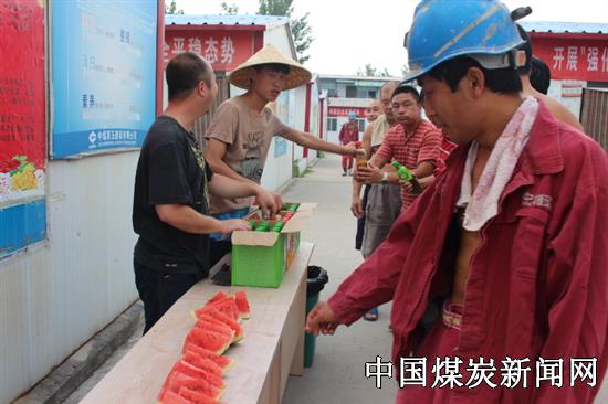项目部组织管服人员和青年岗员在现场开展了“炎炎夏日送清凉 亲情传递嘱安全”活动。他们将一块块西瓜、一瓶瓶清茶送到上下井职工手中,在送清凉的同时与一线职工进行面对面交流,传递着“牢记安全生产,按章作业”和“职工兄弟们辛苦啦!”的关心话语……一句句亲情般地问候和安全的叮咛,让送清凉活动犹如一阵阵夏季丝丝凉风注入职工们的心田。“谢谢!”、“感谢项目部领导想着我们”……感激之情溢于言表。