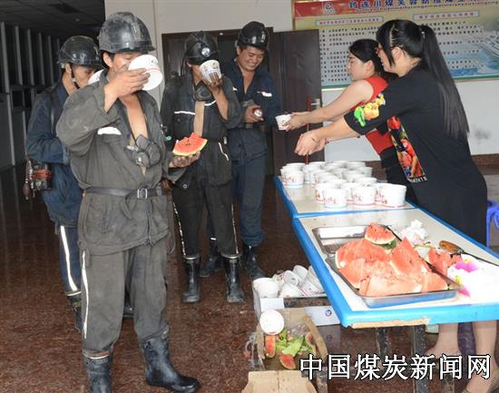 ![]() 女工家属们早早准备好清热解暑的绿豆汤和冰冻西瓜,下午2点过,中班职工开始入井,女工们将绿豆汤和西瓜送到职工手上,并叮嘱他们,“天气炎热,一定要休息好,注意防暑降温,工作中要严格遵章守纪,按章操作,保证安全!” 当天共送出绿豆汤80碗,西瓜90斤。