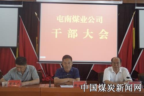 【本网讯】近日,新疆屯南煤业召开了干部大会。师市党委常委、副师长徐生才,师市党委组织部电教中心主任刘军,市国资委主任黄文广,公司中层以上干部,新任职人员及屯南社区相关负责人参加了会议。会议由党委副书记、总经理于文轩主持。