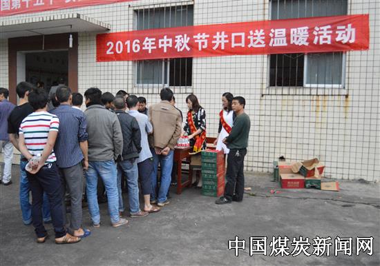 9月15日,贵州盘南公司工会在两采区开展中秋节井口送温暖活动,为节日里战斗在一线的职工送上美味月饼和深情祝福。