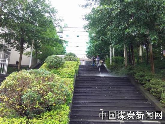 ![]() 环境整治过程中,该矿后勤队加大重点区域、醒目地段、绿化地段环境卫生整治力度,对矿区道路、工业广场、楼梯楼道卫生死角等垃圾进行清理;对办公楼周边杂草枯枝进行剪枝清理、矿区及家属区各水沟进行疏通;对进场公路、场区路段、办公楼、食堂广场进行冲洗。
