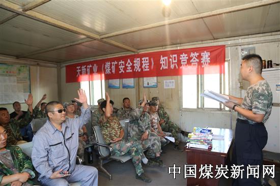 “煤矿企业必须对从业人员进行安全教育和培训,培训不合格的,不得怎么样?”“采掘、运输、排土等机械设备作业时的两个严禁是什么?”“在大雾、雨雪等能见度低的情况下作业时,必须制定什么措施?”……9月8日早上6点40分,河南能源义煤公司天新矿业坑下点名室内座无虚席,热闹非凡,一场别开生面的竞答赛正在这里举行。这是该公司工会、安检科利用班前会为生产一线职工精心烹制的安全“早餐”—《煤矿安全规程》知识竞答赛。