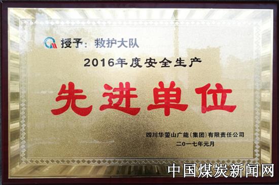 | 川煤广能救护大队喜获公司2016年度安全生产先进单位 | |||