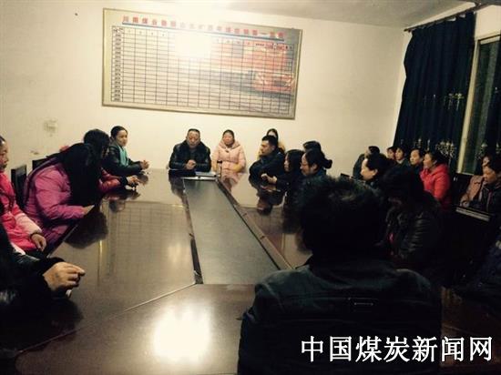 ![]() 在运销队会议室,女工家委告诉家属姐妹们:采掘职工井下作业苦、累、脏、险,他们常年在采掘一线,工作时间长,劳动强度大,环境恶劣,女工们要当好贤内助,叮嘱自己丈夫按章操作,搞好安全生产。在各基层连队会议室,女工家委人员,告诉职工一定遵章守纪,增强安全知识,自觉遵守煤矿安全规程,不违章蛮干。