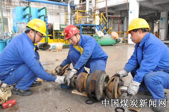 义煤公司党政一号文件下发后,义翔铝业认真学习贯彻文件精神,并结合生产实际,深入开展隐患排查治理,及时消除各类事故隐患,为实现全年科学、安全、可持续发展提供保障。图为1月13日,供热站职工在修复供液泵,更换轴套