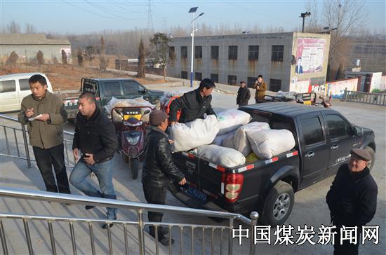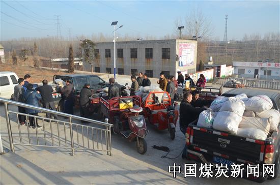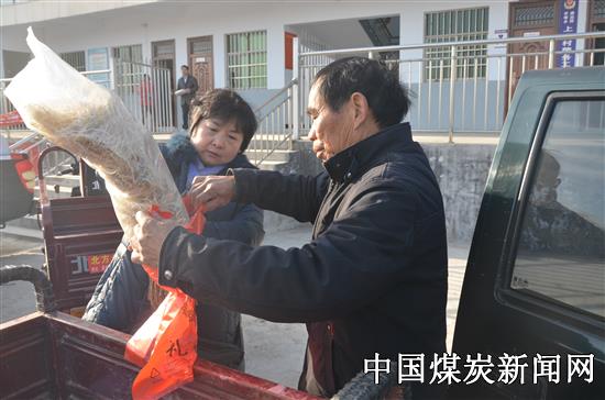 【本网讯】2017年1月13日,河南省煤田地质局职工高高兴兴领到了来自定点帮扶村——伊川县平等乡上元村的花生、粉条、小米、玉米糁绿色农产品。
