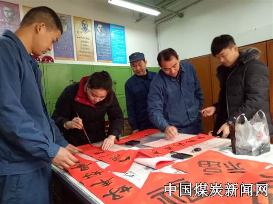 【本网讯】近日,中国平煤神马集团帘子布公司原丝二厂书法爱好者张华瑾和任进杰利用休息时间走进班组,为职工门义写春联,送上新春的祝福。