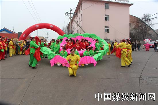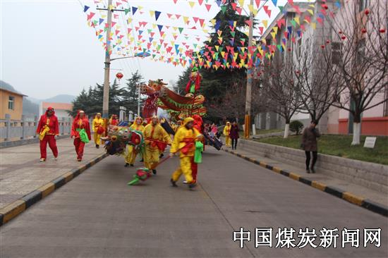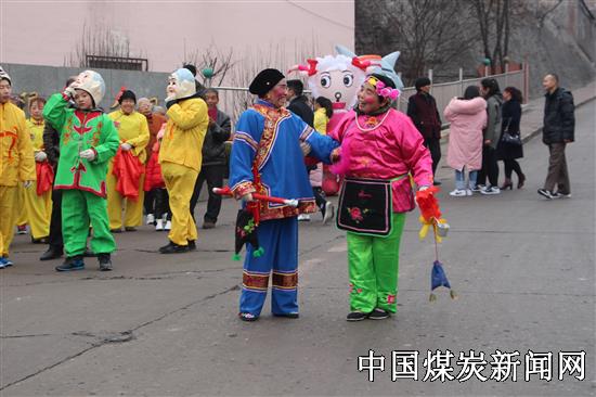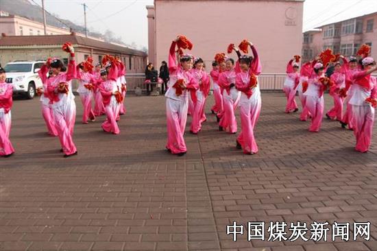 徐家沟矿区锣鼓喧天,空气中到处弥漫着浓浓的喜气,矿区职工家属以载歌载舞的民间庆春节的方式向人们传播者新气象。舞龙、划旱船、扭秧歌、乡村媒婆等民间节目被矿区人演的活灵活现。广场舞也跳的有滋有味,到处呈现出红红火火的新年热闹祥和的浓郁氛围。