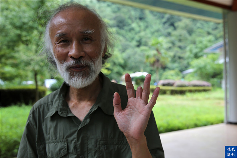 1989年,陈远辉在郴州莽山发现一条色彩鲜艳的扁头白尾蛇,他将这条蛇命名为“烙铁头”。这是世界上发现的第50种毒蛇,全世界只有湖南莽山地区有分布,且数量稀少,被誉为蛇中“大熊猫”,黑市上曾卖出100万一条的惊天价格。图为陈远辉“蛇博士”站在他的雕像前。 陈远辉从1989年发现那条色彩鲜艳的扁头白尾蛇起,从此以后,他这一生,就与蛇再未分开过。 陈远辉今年68岁,早已从莽山林业局退休,但他还是常常定点的来蛇馆。 蛇馆在莽山脚下,距陈远辉住的莽山乡卫生院还有十多公里,从前这十多公里他大多用脚走,60岁那年,陈远辉考了驾照,从此后每天开车在莽山蜿蜒的山路上,最高开到海拔1600米。 开车进山的时候毕竟在少数,陈远辉更多时候都在莽山的丛林里头考察,那里大多是没人去过的无人区,阴暗潮湿,不见天日。蛇是冷血动物,最是喜欢这样的地方。 陈远辉考察有时候一两天,有时候一个星期,甚至一个月。年轻时候他背着帐篷和大麻袋,麻袋里面装上一个星期的饼干和矿泉水,还有必不可少的温度计和指南针。后来年纪大了,60岁以后,他再进山科考时候带上的最重要的就是女儿。 女儿从小耳濡目染关于蛇的东西,并且和陈远辉的烙铁头蛇一起长大,对于各种蛇毒非常了解。如果他被毒蛇咬伤,女儿医治起来他很放心。 但是被蛇咬的多了,也偶尔有意外的时候。在研究烙铁头蛇的几十年里,陈远辉先后被咬过九次。 前几次他拿自己做试验,咬伤了只做解毒措施,不上止痛药,陈远辉想体验下烙铁头蛇的毒性。 这次的感受大概是终身难忘的,以至于68岁了谈起被蛇毒折磨整宿的时候,陈远辉整整昏迷了三天,死神最后放了他一马。他用自己研制的药救了自己,但是那截被烙铁头蛇咬伤的中指已经腐烂发黑,只能切掉。从此,陈远辉成了能治百毒的九指神医,30多年里成功治疗500多名蛇伤病人。图为陈远辉举起被毒蛇咬伤,断了半截的手指头。 曾有许多人找陈远辉买蛇,出价不菲,黑市上的价格曾被炒到一百万一条。陈远辉坚决不卖,他卖不得,不敢卖,也不能卖。图为陈远辉在蛇馆给游人介绍如何防止被蛇咬伤,如果被蛇咬了之后如何急救。