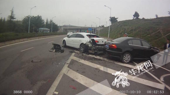 车辆受损严重。渝北交巡警供图 华龙网发 睡懒觉睡掉5万,真是不划算!在重庆渝北某公司上班的小张习惯晚睡,早上赖床。10日,他因贪睡了半小时,眼看上班迟到了,便驾车一路飞奔,结果追尾了一辆大众CC,并导致司机受伤,负事故全部责任的小张承担5万多元的赔偿。 10月10日8时40分许,渝北区319国道浅水湾匝道处发生一起严重的追尾事故。渝北公安分局交巡警支队保税港区大队民警接到报警,赶至现场发现,一辆黑色朗逸和一辆白色的大众CC尾部停在一起。朗逸车头部的保险杆脱落,左右大灯损坏,发动机损坏裸露,全部安全气囊弹出;大众CC的后保险杠脱落,后挡风玻璃碎裂,左右尾灯损坏,后备箱严重变形;CC轿车驾驶员的鼻腔撞裂,民警见状赶紧送受伤人员去医院救治。 经调查,朗逸轿车驾驶员张某在空港园区某公司上班。当天他赖床,睡过了头,眼看上班要迟到了,他一路将车开得飞快。当他行驶至渝北区319国道浅水湾匝道下坡处时,仍然没有减速,结果,“砰”的一声巨响,张某的朗逸轿车追尾撞击了前方一辆大众CC,朗逸车追尾后,车头被撞得旋转了90度,CC轿车驾驶员鼻子撞在方向盘后,出现撕裂伤。 因构成“未与前车保持安全距离的”违法行为,民警依据《道路交通安全法》相关规定,对张某处以罚款100元的处罚,同时认定其负事故全部责任,他将承担赔偿该起事故的车损和前车司机治疗费共计5万余元。