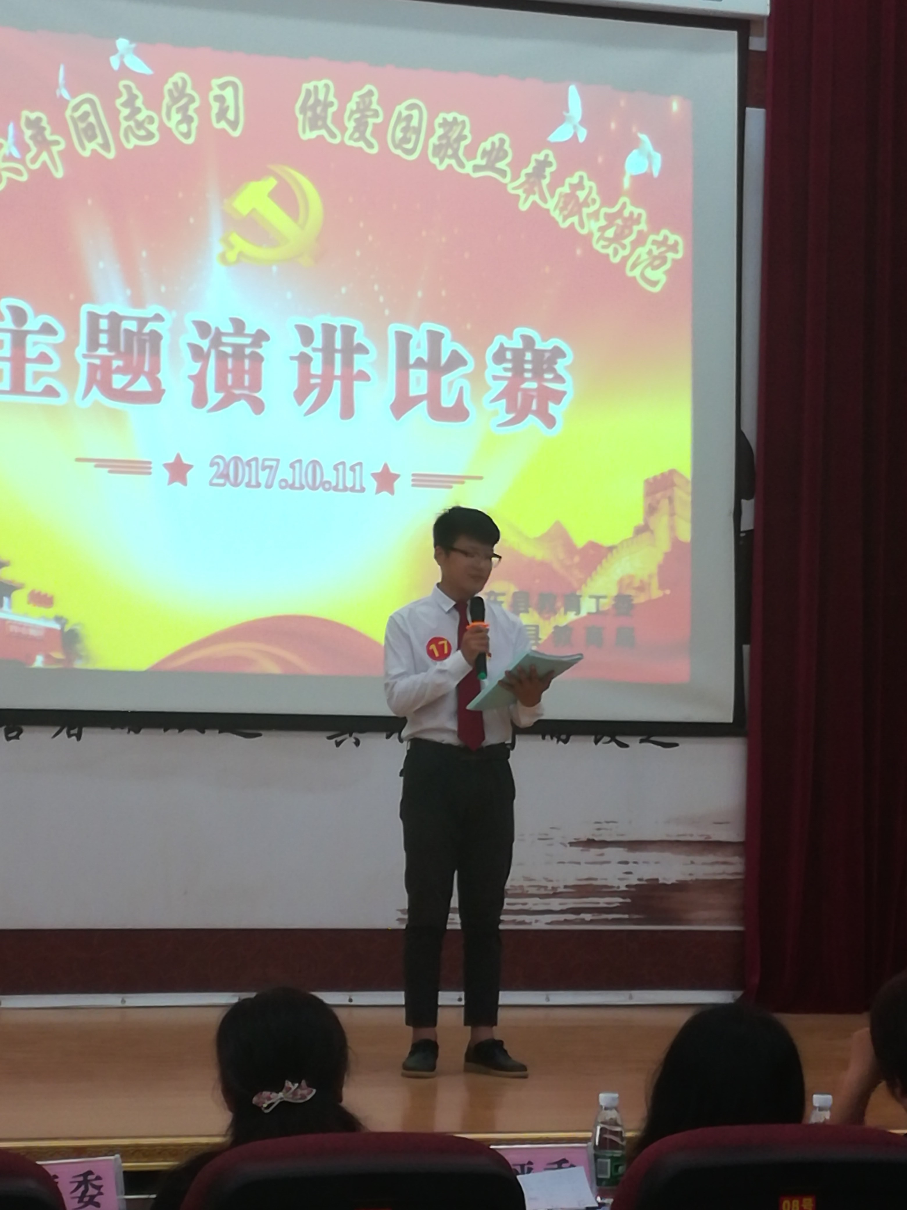 ![]() 【本网讯】2017年10月11日早上七点半,田东县教育局党委主办以“学习黄大年同志先进事迹教育大会”在田东中学召开。会议分四个流程:观看有关黄大年先进事迹的教育视频;田东县教育局局长对学习黄大年先进事迹发表讲话;“向黄大年同志学习 做爱国敬业奉献模范”主题演讲比赛;对获奖人员颁发奖状奖品。 本次比赛,一共有来自田东县教育部门19个教学单位参赛,十九位优秀选手依次登台亮相展示个人风采。优美的声音,激昂的语调,动听的音调,把现场的气氛推向高潮,在场的观众和评委共享这一场视听盛宴。每一位老师都拿出了自己的拿手本领,在紧扣主题的同时结合实际生活,展现出不俗的风采。 其中,中国矿业大学研究生支教团(广西分团)成员李昊灿同志代表田东县第二中学参加演讲比赛。 李昊灿同志,在克服时间短、任务重等困难后,以9.77分的最高分取得并列第一名的好成绩。在面对客场作战的不利条件下,顶住高分的压力,充分发挥自己专长,展现了二中教师的风采,体现了志愿者无私奉献的精神。 本次参赛,是在黄副校长的指导之下,由梁小虎主任的带领之下,二中全体教师的协作努力之下取得了“向黄大年同志学习 做爱国敬业奉献模范”主题演讲比赛的优秀组织奖。 本次演讲比赛的成功举办,不仅为中国矿业大学研究生支教团(广西分团)所支教的田东县第二中学带来荣誉,也体现出团员们爱岗敬业,无私奉献的青春能量。