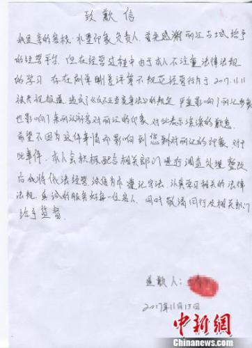 记者14日从云南省丽江市委宣传部获悉,该市两家涉嫌“刷单炒信、自己写好评、差评随意删”客栈负责人已书面致歉,对自己的行为向公众表示道歉。 图为“亲的客栈·丽江水墨印象店”负责人的道歉信。 钟欣 摄 日前,媒体曝光了丽江古城“风花雪月连锁客栈(初见店)”和“亲的客栈·丽江水墨印象店”的美团网电商业务存在“刷单炒信、自己写好评、差评随意删”等不正当竞争行为后,古城区迅速成立联合调查组,依法依规对涉事客栈展开了调查。 11月12日,两涉事客栈负责人通过丽江古城电视台向公众致歉,表态将积极配合管理部门调查取证,依法接受处理。13日,两涉事客栈负责人书面致歉,对自己的行为向公众表示道歉。 图为“风花雪月连锁客栈(初见店)”负责人的道歉信。 钟欣 摄 两家客栈负责人在致歉信中表示,其行为严重影响了丽江形象,也影响了来丽江游客对丽江的形象,对此表示道歉。对于此件事,会积极配合相关部门进行调查处理,整改后将依法经营,诚信为本,遵纪守法,并接受监督。 目前,涉事客栈已从美团网电商平台下线,停业整顿并配合接受调查。相关调查工作正在进行中。