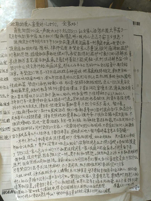 何洪章胜子一家人合影,里面缺了父亲何洪、大姐和被送走的老十一。 中国青年报 图 屋里有三台风扇,吹出“呼呼”的声响,淹没在一串打闹声中。 四川省遂宁市蓬南镇三台村,村民何洪和章胜子夫妇,1996年至2011年生了5男6女11个孩子。 一个接着一个,他们从地上爬起来,窜入风中奔跑,兄弟姐妹之间你追我打。 何家儿女很少与村里其他小伙伴玩,背负着“11个孩子”家庭的名声,觉得村子里的人都看不起他们,又有村民觉得他们家“霸道与无赖”。 “只要一个孩子出息了,再带动兄弟姐妹,一家人命运就改变了。” 父亲何洪坚信,存钱不如存人,总有一个孩子会改变家庭命运。 不料改变家庭命运的是他自己:2016年3月,何洪因涉嫌故意伤害罪被逮捕。8月15日,四川省遂宁市中级人民法院一审开庭宣判:何洪犯故意杀人罪,判处无期徒刑,剥夺政治权利终身。 48岁的妻子章胜子觉得,这个家算是彻底毁了——种庄稼的不能好好种庄稼,工作的不能好好工作,读书的不能好好读书。 十一个孩子 “我只想要两个小孩,一个儿子和一个女儿”,章胜子反复强调,但丈夫何洪不同意,没有办法她只能听何洪的。 屋子里很凌乱,床上扔着一本《好习惯成就好人生》,床下掉了一本《快乐人生》,桌子上摆着一本《成功法则》。这个一心向往成功的家庭,承受着因超生带来的贫穷与混乱。 老五和老六扭打在一起,被母亲章胜子呵斥了一声后,两人瞬间分开了,光着脚丫踩在一片狼藉的水泥地板上。在更早些年,章胜子每天从田地里回来,都能闻到满屋子的臭味,看见蹭了一身屎尿的孩子在哇哇大哭。 章胜子在厨房为孩子们准备午餐。 本文图片除署名外 澎湃新闻记者 明鹊 孩子一个个长大后,她开始为生活发愁,“一家十几口人,每天要吃13斤米,加粗粮也要七八斤米。”为了节约开支,11个小孩没买过新衣服、裤子、鞋子,都是捡来的和别人送的。 家里以前没有电视,今年三四月份时,一位好心人送来一台老旧电视,放在章胜子房间的桌子上。不过孩子们晚上很少看电视,经常晚上九十点钟就睡了,平时读书的时候会睡得更早些。 “刚进初中的时候,她身上散发出浓重气味,没有人愿意跟她一起坐。”班主任胡钊说起何家老五何久名(化名),直到后来衣服变干净了,头发也梳得整齐了,她和同学的关系才慢慢变好。 关于这个子女众多的家庭,村民们态度复杂—— “很凶,不讲理。”“何洪经常带着小孩去偷东西。”“我们不清楚,他不来找我们,和我们家没有矛盾。”“他就是个无赖,村里附近一半的人被他欺负过。” 何洪大哥何学文说,早年章胜子不会种菜,小孩看到别家的瓜瓜小菜,就跑去菜田里摘走,时间一长,周围群众就对何洪家产生了怨恨。 没人说得清怨恨从何时开始。几乎没有人跟他们家小孩玩,村里没有人上他们家,他们也不上别人家……对于村里村外流传的指责,章胜子觉得很委屈,她说因为小孩多、家里穷,村民故意诋毁他们,偷走了她种的小菜、土豆,以及她养的三十只鸡。 “你给我发个新闻出去,我们家粪桶都被人偷了。”章胜子说。 “不晓得哪回事,我爸爸想让我们家人多力量大,结果我们一家现在是村里头最让人看不起的家庭。”老二何君徽接受中国青年报记者采访时说。而如今他们甚至觉得,连亲戚都看不起他们家。 新家客厅的墙壁上贴着第四个孩子画的画。 章胜子娘家有一个哥哥和一个妹妹,“哥哥看不起我,妹妹还跟我打电话,怪我怎么生那么多。”2013年媒体报道后,妹妹打电话她也不敢接了,“全世界都晓得了,好丑嘛,去市集还有人用手指着说!” 何洪是家里的老幺,上面有三个哥哥和三个姐姐,他们和何洪家的关系都不太好。“我们从来不求哪个,求不到嘛,人穷都不理你啊!” 章胜子说。 何洪干脆告诫一家人,要随时随地防小人的暗算。 “存钱不如存人” 8月下旬,阳光照在金色的稻穗上时,几台收割机开进了三台村。 68岁的何学文从地里回来,他有三个女儿和一个儿子,“现在都结婚了”,何学文说。他当了七年兵,受伤从部队回来后,担任三台村主任、村书记二十多年,一直干到2009年退休。 村子离蓬溪镇约六七公里,是川东南一个普通的小村庄。几年前,外地人开着收割机闯了进来,村民就不再自己踩打谷机了。 二十二年前,安徽人章胜子在上海一家饭店打工,认识了当时在上海做建筑工的何洪。那时何洪年轻帅气,上过初中,嘴巴又甜,对章胜子也好。 何洪章胜子家对面,邻居距他家大约两百米。 章胜子很快跟着何洪回了四川蓬南镇老家。1996年,他们的第一个孩子出生,何洪那时在镇上工地做工,公公婆婆又走得早,章胜子一个人既要照顾小孩,还要操持家里的事情。“上午生了小孩,下午还要起来喂猪”,接连五年,章胜子生了四个小孩,都是何洪用剪刀在家里亲手帮妻子接的生。 “生了第四个后,我们就跟他说(结扎),但他还是要生”。大哥何学文说,章胜子是外省人,说话“叽叽喳喳听不懂”,而且 “一怀孕就跑(躲)出去,等到要生就回来,我们也没有办法”。 村庄里大多数家庭只生两个小孩,何洪夫妇让村民感到惊讶,他们不时地听说何洪家“又生了”。章胜子说她只想生两个,但每次她跟何洪讲,何洪就骂她脑子太笨:“存钱不如存人,钱是死的,人是活的,人多不求人”。 “2007年左右,有一次,计生委的人来了。他们来到村里的时候,被何洪在后面看到了,就带着章胜子跑