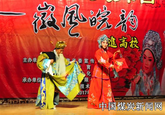 【本网讯】生旦净丑,唱念做打。11月1日下午,2017年校园大舞台“徽风皖韵”进高校活动走进安徽矿业职业技术学院,来自亳州市演艺公司的艺术家们为该院师生献上了一场精彩纷呈的地方戏曲专场演出。