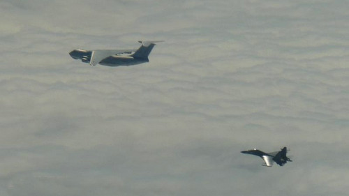 资料图片:伊尔-78加油机和苏-30战斗机。(《香港经济日报》网站) 11月24日报道 港媒称,解放军空军编队11月22日再度穿越台湾当局划设的“防空识别区”,经巴士海峡飞往西太平洋,展开远海长航训练。但此次跟过去显著不同,不仅参与军机逾10架,且机种非常全面,涵盖战斗机、轰炸机、空中加油机、侦察机等。 据《香港经济日报》网站11月23日报道,根据台军方的通报,解放军11月22日派出多架不同型号的军机,经巴士海峡飞往西太平洋进行跨岛链远海长航训练,当中包括轰-6轰炸机、图-154侦察机、伊尔-78空中加油机、运-8运输机、及苏-30战机等,总数大约10架。 台当局防务机构负责人冯世宽形容,解放军此次演习,代表大陆准备做非常实际的“攻击航线”。但也有报道称,所谓攻击航线或许只是台湾方面的渲染而已。 事实上,台湾当局的政策研究基金会高级助理研究员揭仲分析指,这次远海长航训练,首度出现伊尔-78空中加油机、与苏-30战斗机的组合,在象征性与武力展示的强度方面,都胜过以往在台湾地区周边进行的远海长航。 揭仲解读称,伊尔-78加油速度快、且执行任务时可提供约60吨的燃油,能支援苏-30战机扩大攻击范围。