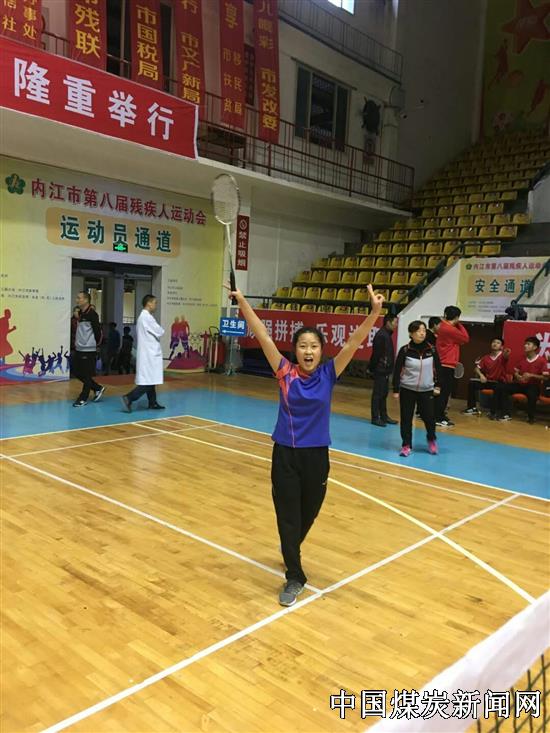 【本网讯】近日,四川省内江地区2017年度残疾人运动会上,矿工曹林丰的聋哑女儿曹路珍与同学一道,代表威远县残疾人运动羽毛球双人比赛冠军。