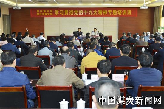 连日来,重庆市煤监、煤管系统通过中心组学习、举办培训班、收看电视电话会议、集中宣讲等形式,重点围绕学习贯彻党的十九大精神和习近平总书记视察重庆重要讲话精神以及关于安全生产工作的重要指示批示,把深学笃用习近平新时代中国特色社会主义思想贯穿始终,大力推动全市煤矿安全生产工作上水平,切实把党的十九大精神转化为促进煤矿安全生产改革发展的具体行动。 增强“四个意识”,牢固树立安全发展理念 11月6日,重庆煤监局、市煤管局举办党的十九大专题学习培训,努力在“学懂”、“弄通”、“做实”上下功夫。 ![]() 重庆煤监局、市煤管局十九大专题学习培训会场。