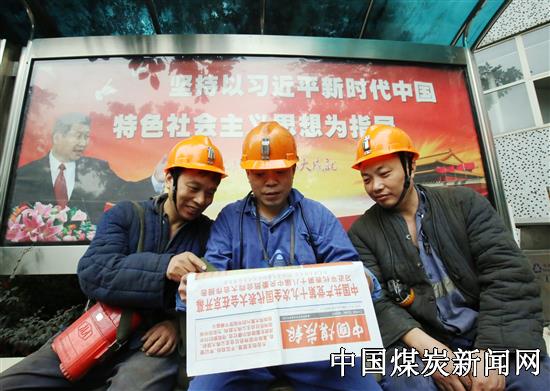 重庆能源集团打通一矿职工正在阅读学习十九大精神。(胡明军 摄)