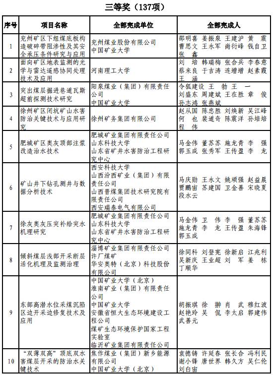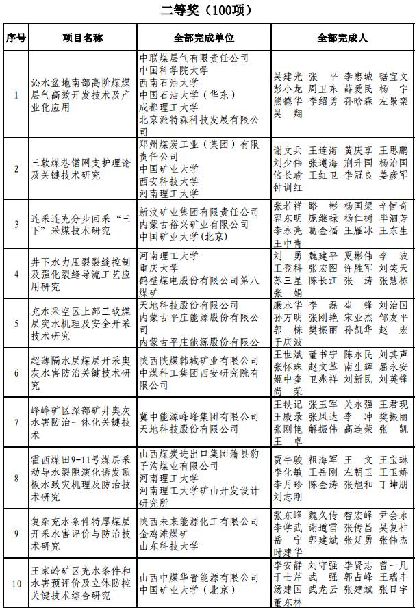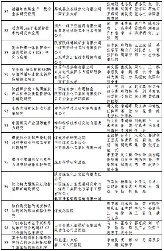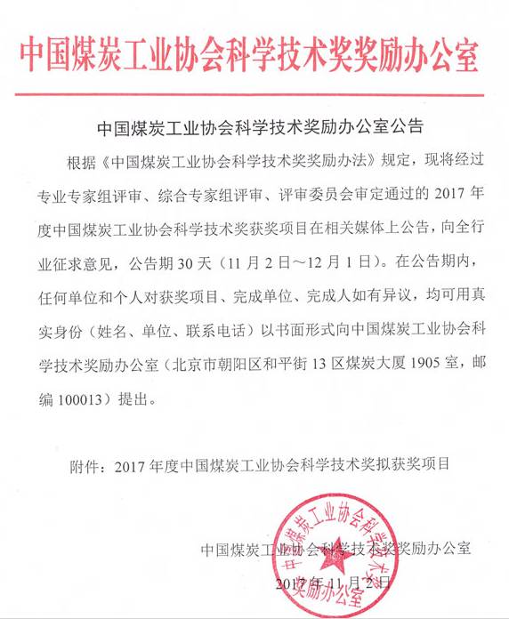 昨天,中国煤炭工业协会公告了2017年度中国煤炭工业协会科学技术奖拟获奖项目名单,11月2日至12月1日期间,向全行业征求意见。